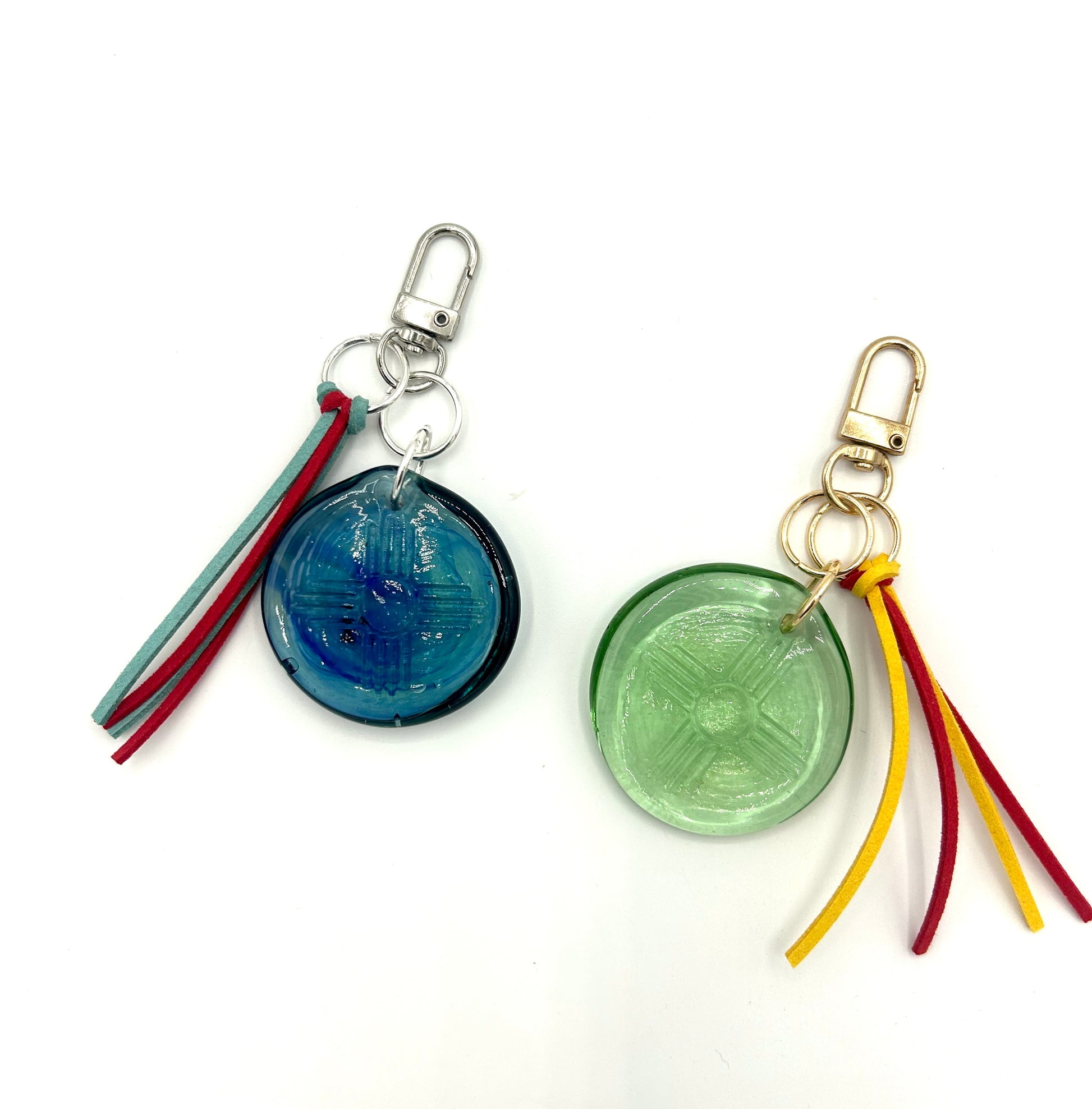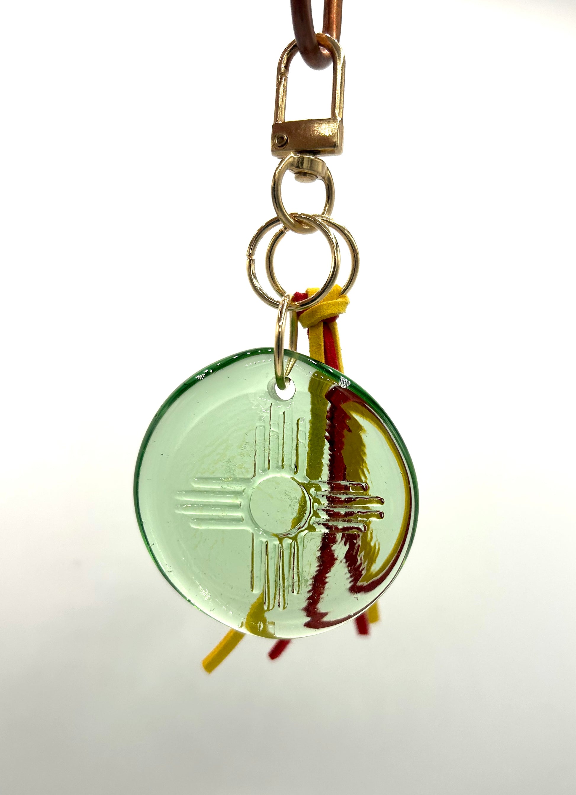 Zia Charm made from 100% recycled bottle glass, metal clasp, and colored faux leather