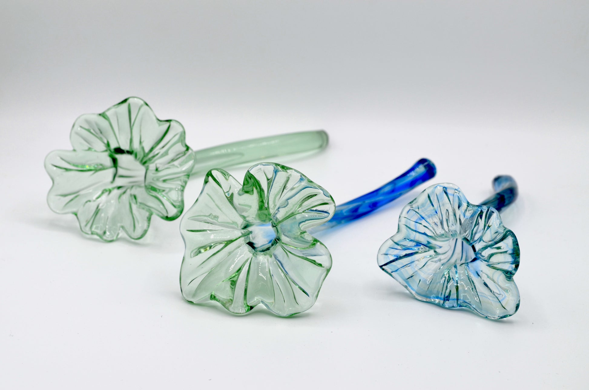 Handblown Glass Flower made from 100 percent recycled bottle glass.